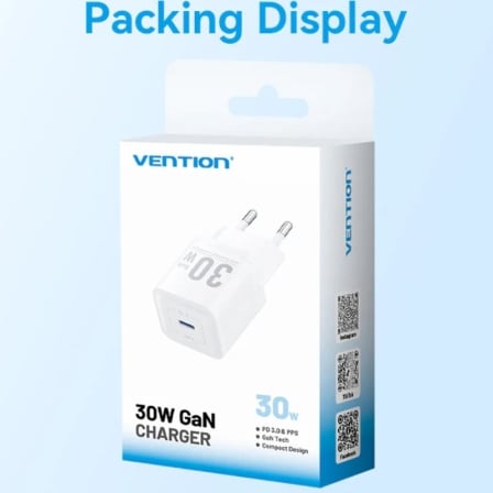 Vention cargador pared GaN 1P USB-C 30W FEZB0-EU Blanco
